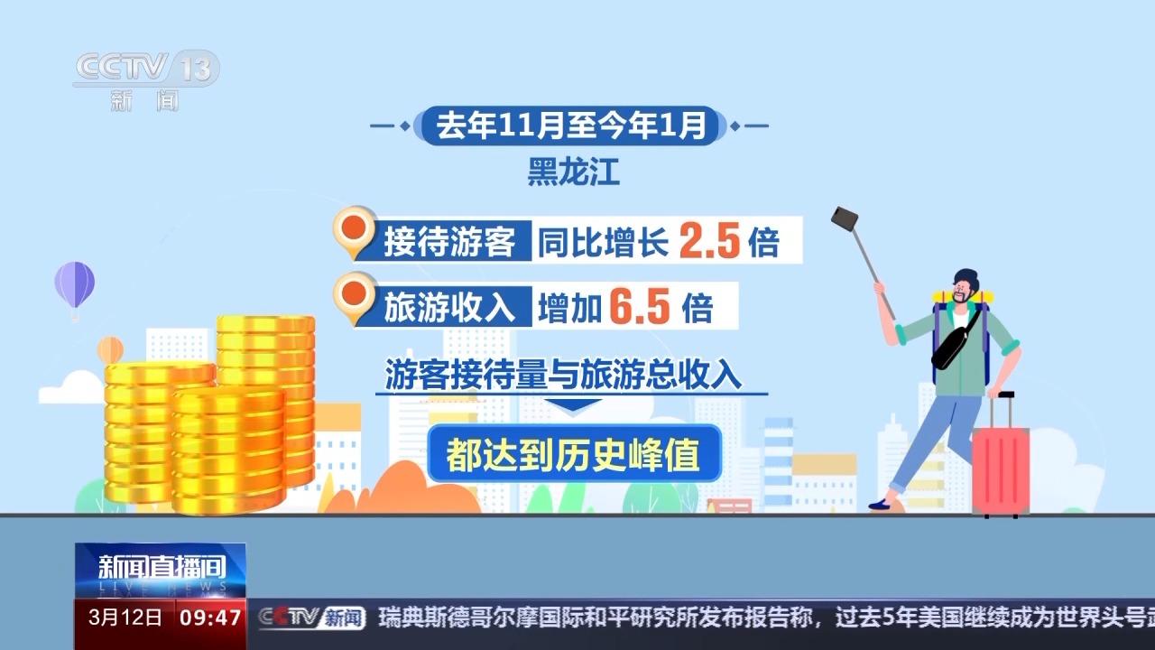 新的消费业态也带来了可观的人气,数据显示,去年11月至今年1月,黑龙江接待游客同比增长2.5倍、旅游收入增加6.5倍,游客接待量与旅游总收入都达到历史峰值。