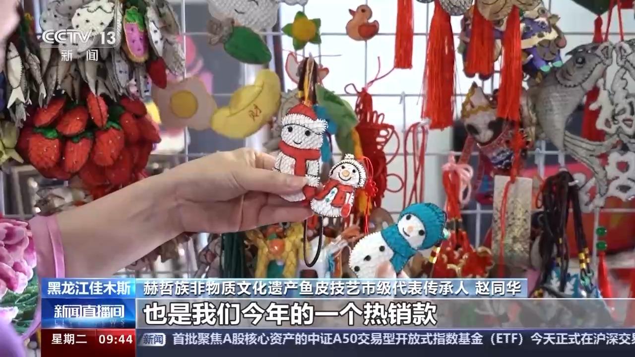 赫哲族非物质文化遗产鱼皮技艺市级代表传承人 赵同华:冰雪热也为我们销售渠道拓宽了市场,我们希望在接下来趁着这个热度的延续性,能够把我们非遗产品的销路打开。