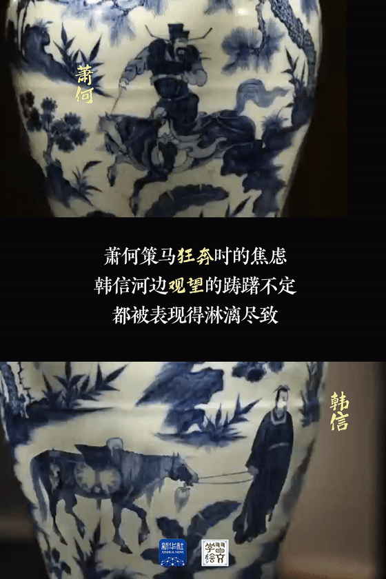 “元代是中国陶瓷史上不容忽视的重要时期。”宋燕介绍,这件藏于南京市博物馆的元青花萧何月下追韩信图梅瓶向人们展示了元代制瓷水平。
