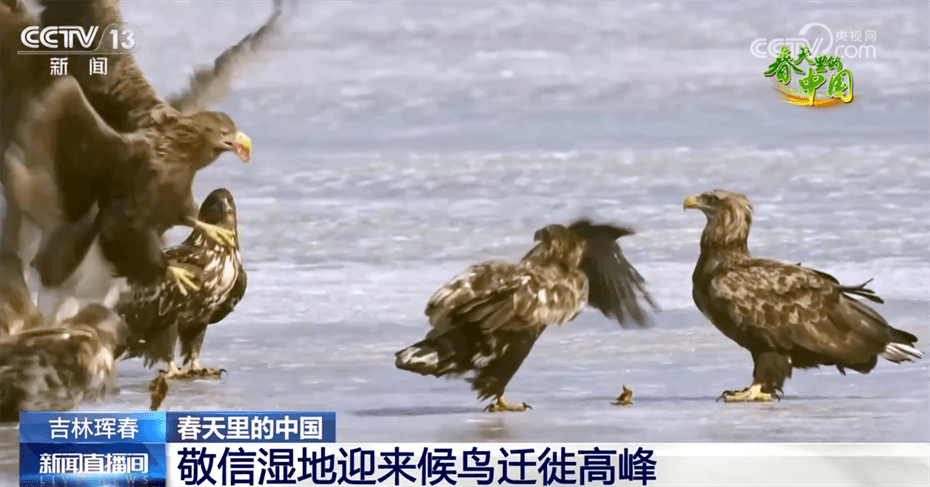 随着气温回暖,吉林珲春敬信湿地迎来大批迁徙候鸟。白枕鹤、虎头海雕、秃鹫等稀有鸟类争相亮相,成为春日里一道亮丽的风景。