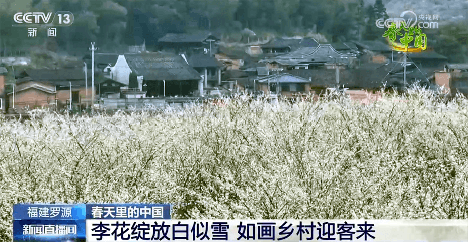 现在我们来到的是福建省福州市罗源县中房镇,这里的两千多亩李花迎来了盛花期。白色的花团聚集在树梢上,微风吹过,有的迎风绽放、嫣然含笑,有的摇曳生姿、半藏半露,置身其中,淡雅花香扑面而来,蜜蜂在花丛中忙碌,为这如画春光增添了一份生机与活力。