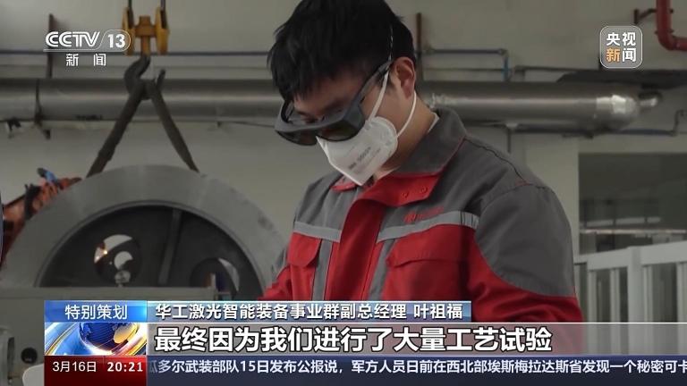 华工激光智能装备事业群副总经理 叶祖福:前前后后差不多进行了六十多台车次的研究,整个焊接的钢板差不多有一千多块。最终因为我们进行了大量工艺试验,所以最终客户也相信我们,然后把这个标定给了我们。