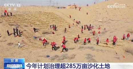 进入三月中旬,甘肃大部分地区气温陆续升高,河西走廊沿沙漠地区陆续开展压沙造林,今年全年,甘肃计划完成沙化土地综合治理285万亩以上。
