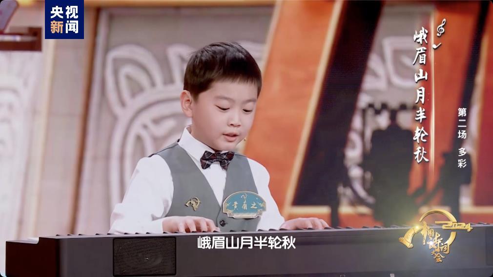 万籁有声,声声关情。翻开中华诗词,历经一千多年的流传,人们依然能从多彩的“中国音”中,找到属于自己的喜怒哀乐,找到与古人强烈共鸣的情感瞬间。年仅10岁的少儿团选手黄有之,师从钢琴家郎朗,喜欢通过弹琴的方式感受诗词之美。在本期舞台现场,他即兴弹奏了自己创作的《登科后》和《峨眉山月歌》,将诗词中孟郊的“欢喜”、李白的“乡愁”演绎在钢琴里,诗乐相和,真挚的情感也感染了现场选手,赢得百人团阵阵掌声。点评嘉宾杨雨老师惊叹:像他这样小的年纪,大部分同龄人学习钢琴还停留在技巧的训练阶段,而他已经可以将自己的情意融入其中,这是诗词带给他的共情能力。