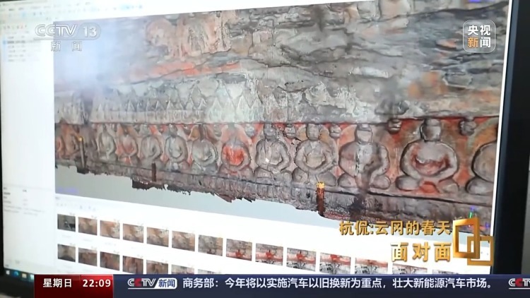 杭侃:因为敦煌起步早,到现在都是我们学习的榜样。但是敦煌它正是因为起步早,可能我们现在技术迭代比较快。所以从技术迭代的角度来说我们并不落后。我们现在的精度已经到了0.03毫米了,但是那样需要的算力是非常大的。我们这有一个超算中心,超算中心是什么概念?就是你看到的一个洞窟的运算能力,要和一个中等城市的,我们叫智慧城市,那个量是一样的。云冈它是一个皇家工程,所以那个像都特别大,敦煌它很多洞窟比较小,另外敦煌它的壁画非常精彩,但是壁画是二维的,所以相对扫描起来相对来说容易,但是我们这个地方它一个是大,第二个就是雕刻的手法多。所以像你看到的第六窟,我们到现在都没有拿得出来,大家都能认可的采集方案。