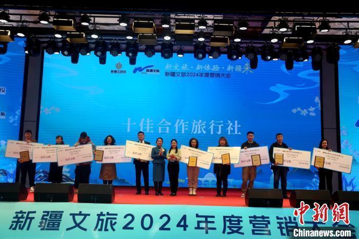 18日,新疆文旅2024年度营销大会举行,为十佳合作单位颁奖。史博 摄