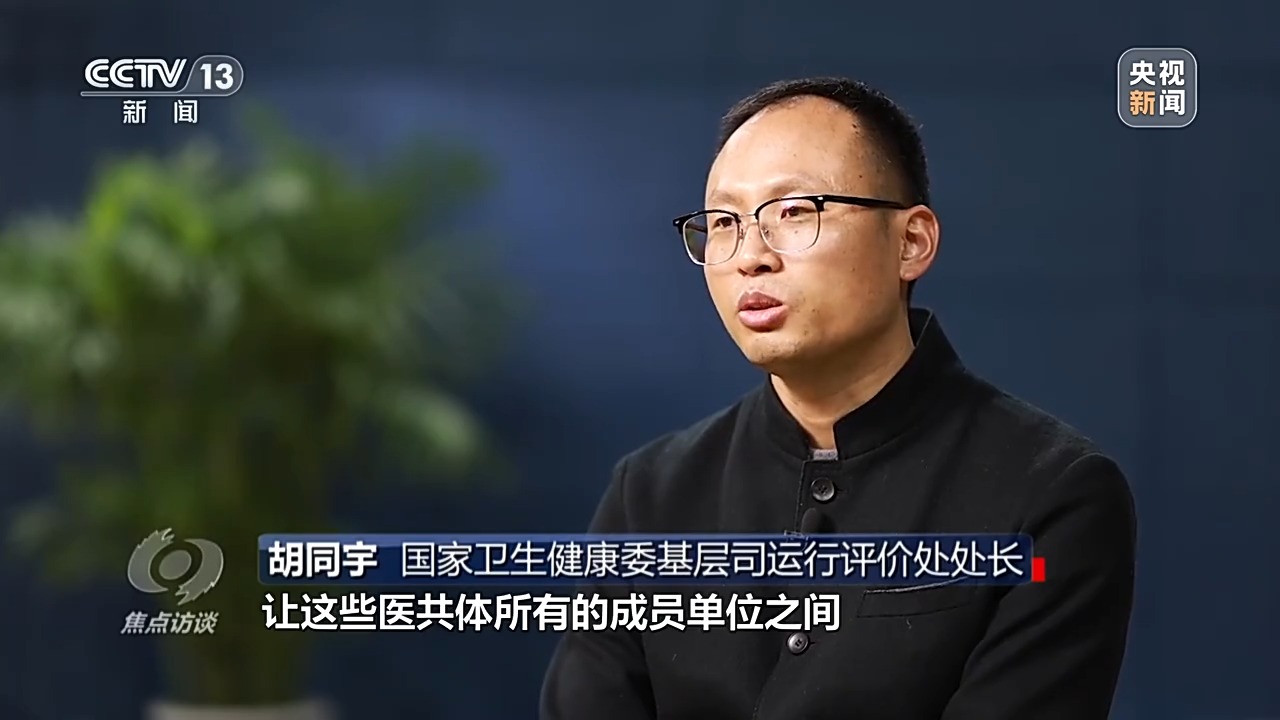 国家卫生健康委基层司运行评价处处长 胡同宇:紧密型是希望让这些医共体所有的成员单位之间管理上是一家人、运营上是一本账、服务上是一盘棋,优化整合医疗卫生资源,从而推动资源下沉,来快速提升基层的医疗卫生服务能力,提高防病能力。
