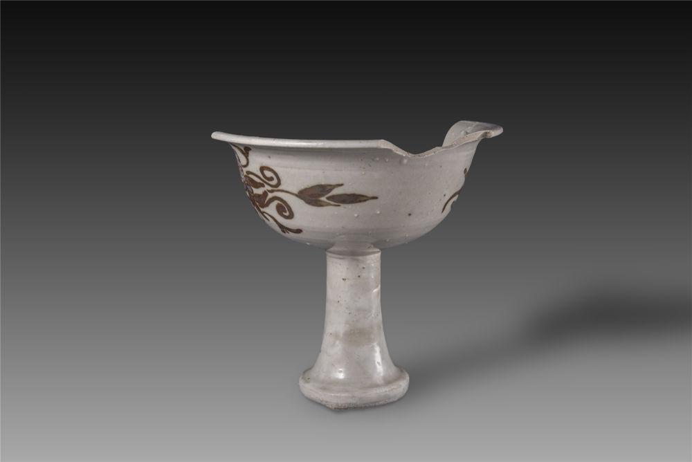 陈村瓷窑址出土明代白地褐花高足杯