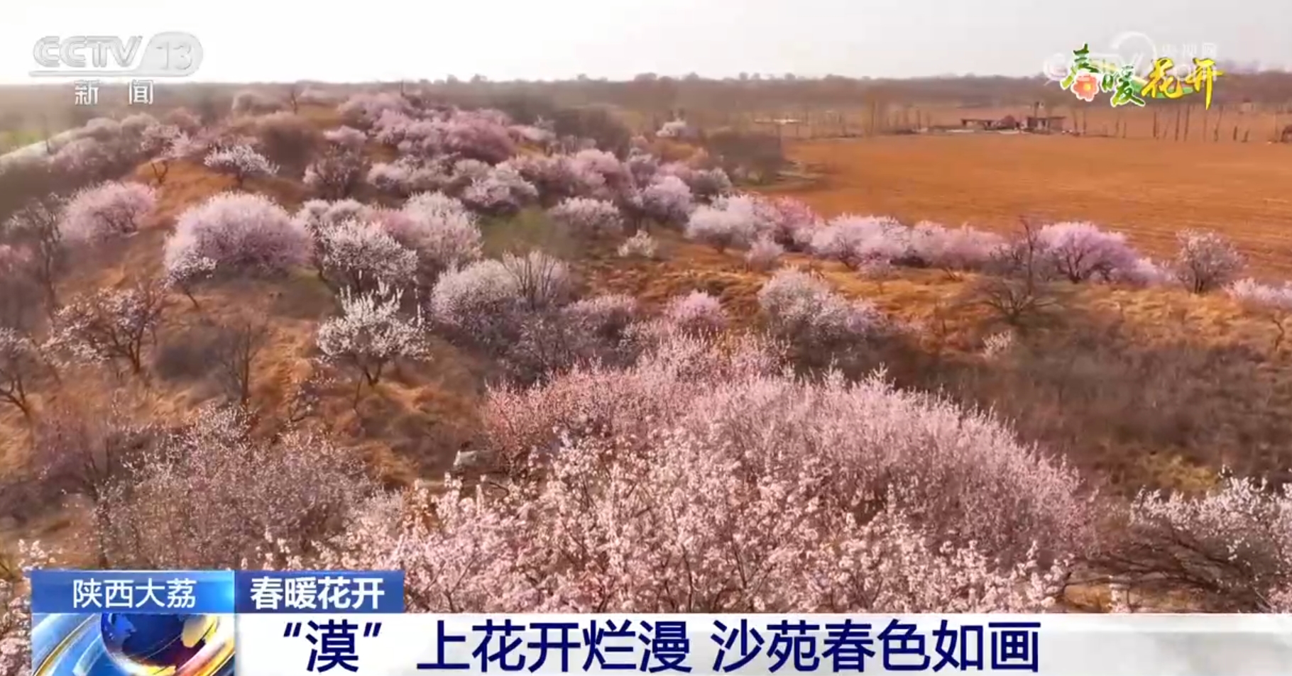 暖阳拂面春风起,漠上花开吐芬芳。我们现在来到陕西大荔县沙苑腹地,这里地处洛渭两河交汇处,是我国内陆平原最大的沙漠沙丘地带。进入春季,大荔沙苑色彩斑斓。在绵延的沙梁之上,漫山遍野的山桃花、杏花竞相绽放,粉嫩如霞是山桃花,洁白如雪是杏花,它们结伴生长,将沙苑腹地点缀得娇羞温柔,置身其中,仿佛走进了一幅流动的春日画卷。