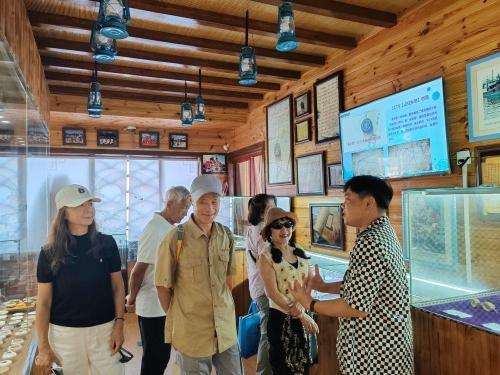 在潭门镇排港村更路簿博物馆,馆长王振忠正在为游客讲述潭门老渔民的故事。新华社记者夏天 摄