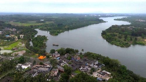 留客村毗邻万泉河,是“下南洋”的必经之路(无人机照片)。新华社记者夏天 摄