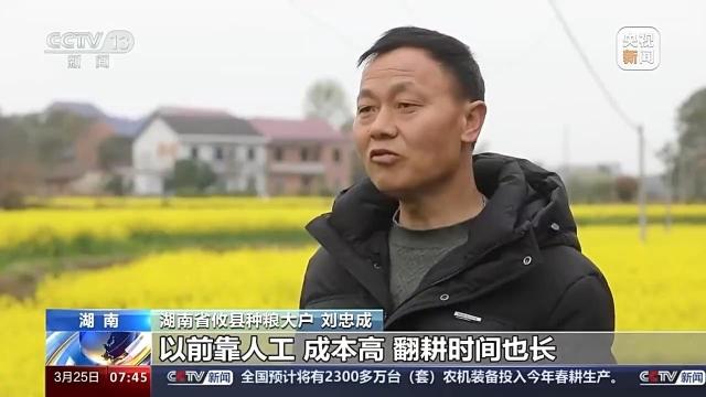 湖南省攸县种粮大户 刘忠成:以前靠人工,成本高翻耕时间也长,无法在节令内完成大面积种植。现在实现了机械化,作业效率是人工的10多倍。