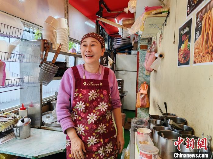 近日,位于台北市中山区热干面店的老板娘冯纯利接受记者采访。该店面积不大,毗邻商圈步道,每逢用餐时间,等餐的食客便围满街边。中新社记者 杨程晨 摄