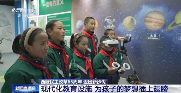 在援藏资金的帮助下,现在,学校不仅有现代化的气膜球馆,还有舞蹈房、钢琴室、绘画室、科技馆等。在科技馆,学生们可以通过VR体验了解航天、环保等知识。这些配备齐全的现代化教育设施,为藏北孩子们的梦想插上了新的翅膀。