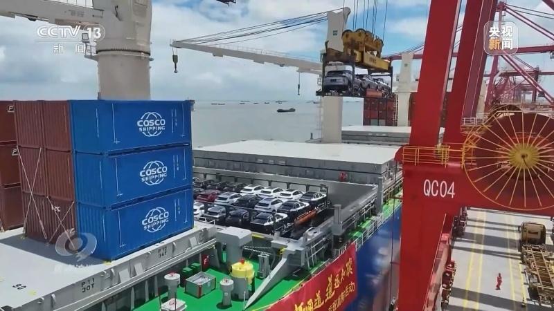 朱嘉明说,今年以来,不仅有越来越多的家具、家电、灯具、陶瓷制品等传统外贸产品从南沙港码头漂洋过海,像新能源汽车、光伏产品等,也是南沙港口出海的热门货物。