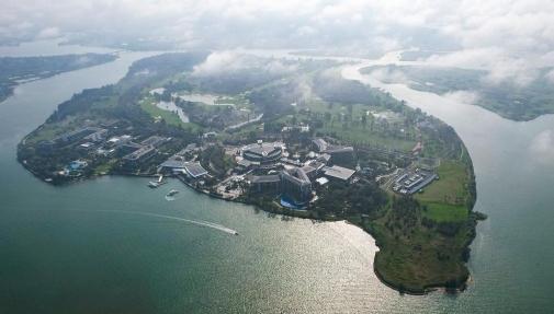 鸟瞰博鳌近零碳示范区所在地——海南省琼海市博鳌镇东屿岛(3月17日摄,无人机照片)。新华社记者 杨冠宇 摄