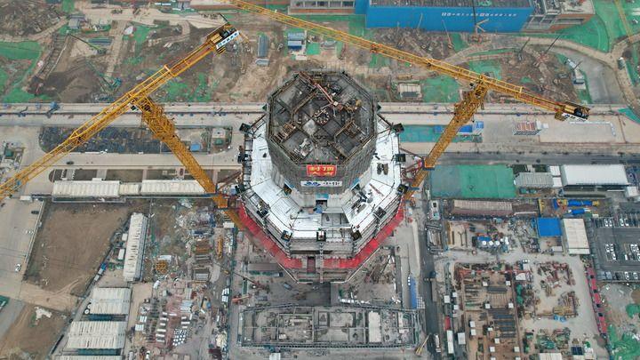 3月27日拍摄的中国中化大厦建设现场(无人机照片)。新华社记者 牟宇 摄