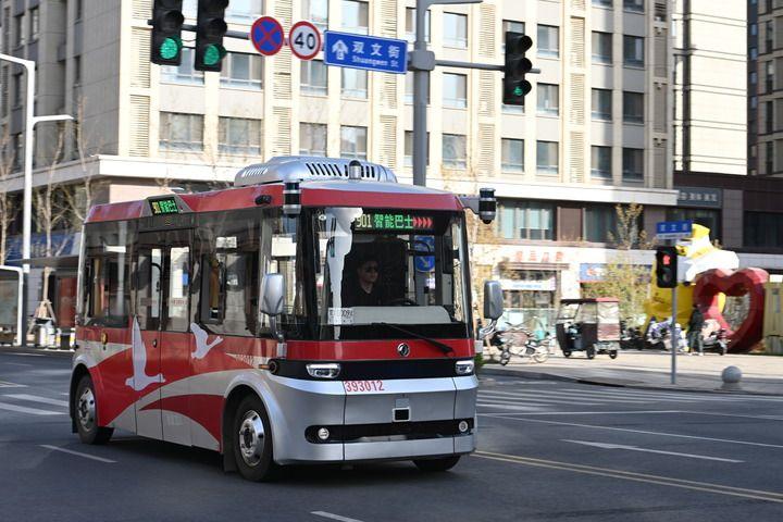 3月29日,无人驾驶智能网联巴士在雄安新区容东片区道路上行驶。新华社记者 牟宇 摄