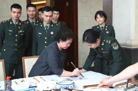 “跟这么多知名书画家面对面交流,机会很难得,收获也很大。”某队列兵赵夏晗入伍前就有较好的书法基础。这次她踊跃报名参加活动,积极向来营书画家请教学习。