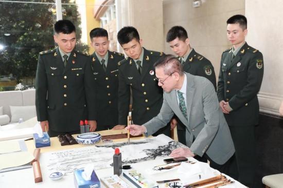新华社澳门3月30日电 澳门和内地10余名书画家近日走进解放军驻澳门部队,在参观军事展览馆后,与官兵一道挥毫泼墨,围绕解放军进驻澳门25周年、练兵备战、履行防务和爱澳亲民等进行书画创作。