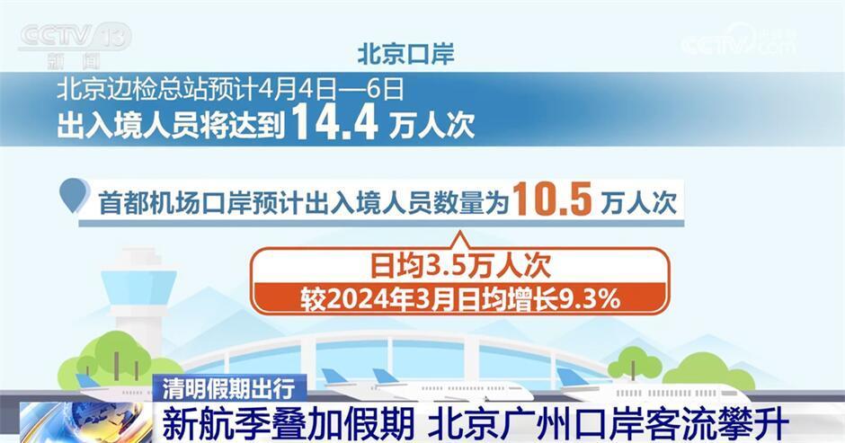 从3月31日零时起,全国各口岸正式执行夏航季航班计划,叠加清明假期,从4月1日开始,北京、广州各口岸客流开始出现大幅度攀升。