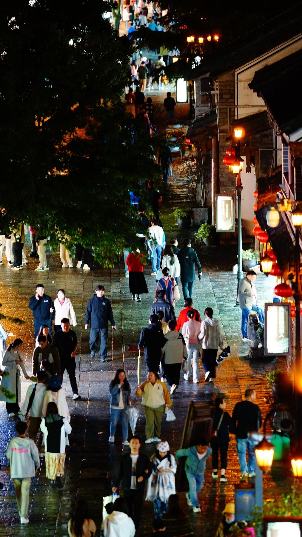 3月31日傍晚,一场春雨不期而至,为仲春时节的大理带来些许寒意。春风沉醉的夜晚,湿润的石板路上,留下了游人往来不息的脚步。