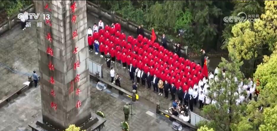 在浙江德清,共青团员、少先队员、退役军人同上一堂爱国主义教育课,大家擦拭烈士墓碑上的尘土,为烈士碑文描摹、填漆。