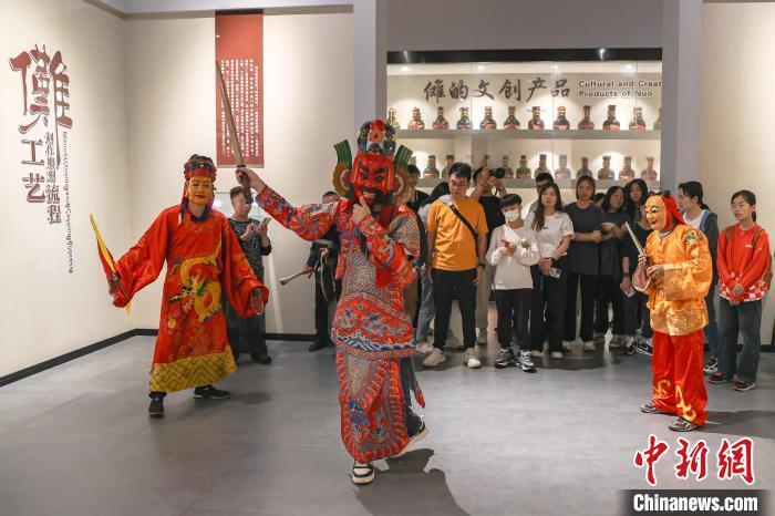 图为“同祖同根·萍城有爱”香港青年内地交流团在萍乡市湘东区的麻山傩文化园观看古老的傩舞表演。刘力鑫摄