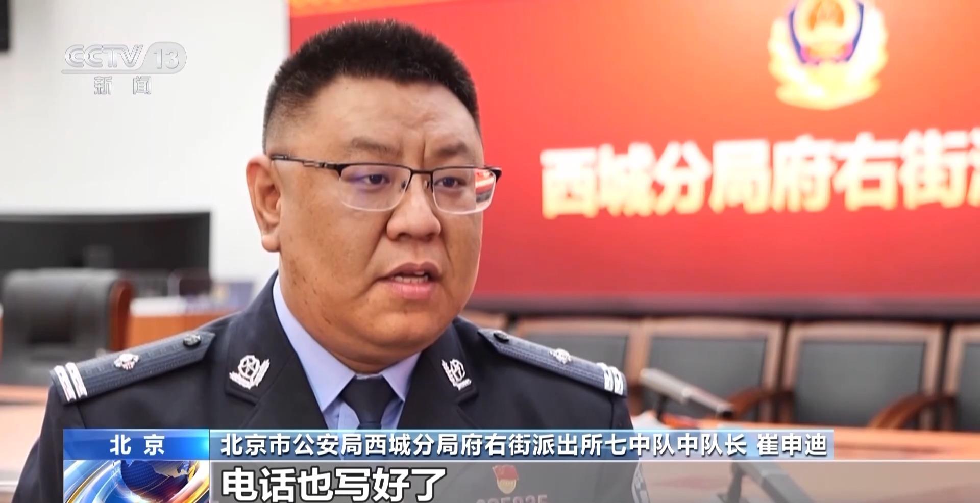 北京市公安局西城分局府右街派出所七中队中队长 崔申迪:我就帮他去联系,打了几十个电话,估计两个多小时,因为有的地儿不接,有的地儿关门,最后找着了一家。然后也是离他家不太远,同时还帮他告诉他怎么坐车,帮他把路径都给他找好了,电话也写好了,然后还帮他预约了时间。