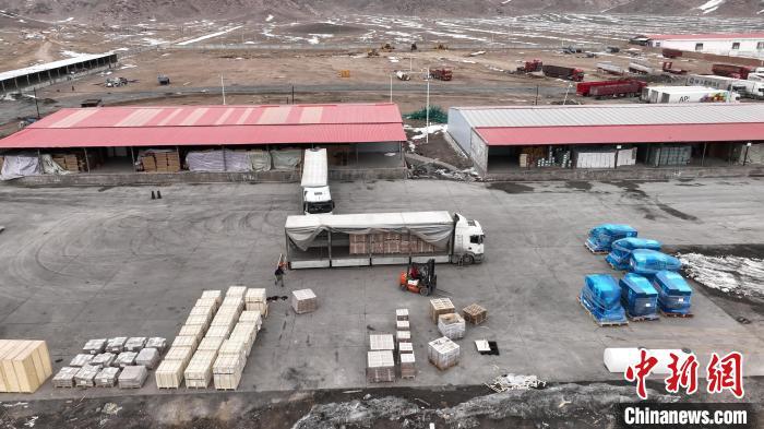 今年一季度,新疆塔克什肯口岸进出口货物量和贸易额实现双增长。图为青河县力好国际贸易有限公司正在装载向俄罗斯新西伯利亚出口的日用百货。刘金锐 摄