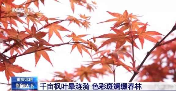 在重庆北碚区澄江镇黄金谷林区,枫叶黄色、绿色、红色相互交织,色彩斑斓。漫步林中,拍照打卡,别有一番“枫”情。据介绍,这片枫叶林面积达2000亩,有10多个品种。林区海拔从300至700米,海拔越高,昼夜温差越大,枫叶的色彩则越鲜艳。正值春季,当地气温较低,枫叶花青素合成较多,枫叶颜色渐红,因此形成了春季也能赏枫叶的独特美景。
