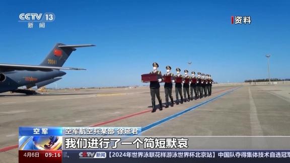 空军航空兵某部 徐延君:我们事先经过了很多次的推敲,包括从飞行的计划、航路的申请,然后包括到国外的外交礼仪,包括我们的飞机整体进行了改装改造。当三军仪仗队把烈士遗骸安放好了以后,我们进行了一个简短默哀,并且对棺椁进行了擦拭,那个时候心情就比较沉重了。但是我们作为机组成员来说,还要把自己的分内工作干好,大家又重新协同,快速高效返回祖国。