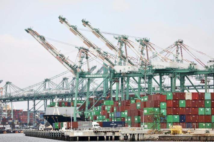2021年10月29日拍摄的美国加利福尼亚州洛杉矶港景象。新华社发