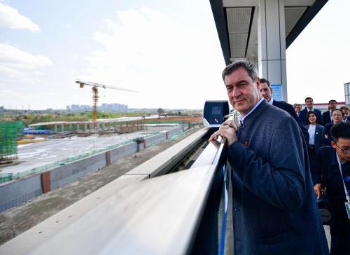 德国巴伐利亚州州长索德尔在四川参观中德合作的磁悬浮成都试验线。新华社记者张超群摄