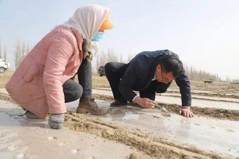 祁裕介绍,先铺膜后点种的说法,其实就是“膜下滴水蓄墒脱盐点种栽培技术”,也是通常说的“干播湿出”。这样可不用冬春灌,不仅省水省力,还节省了生产费用。