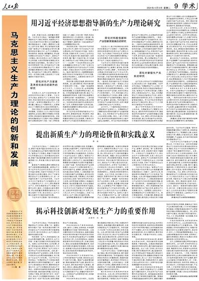 发展新质生产力是推动高质量发展的内在要求和重要着力点。习近平总书记关于新质生产力的重要论述,是对马克思主义生产力理论的创新和发展,进一步丰富发展了习近平经济思想的内涵,既具有重要的理论意义,又具有深刻的实践意义。我们要坚持以习近平新时代中国特色社会主义思想为指导,深入学习贯彻习近平经济思想,不断深化对新质生产力的研究,为发展新质生产力提供学理支持,为发展马克思主义生产力理论提供学术支撑。今天刊发的三篇文章,对此进行探讨。