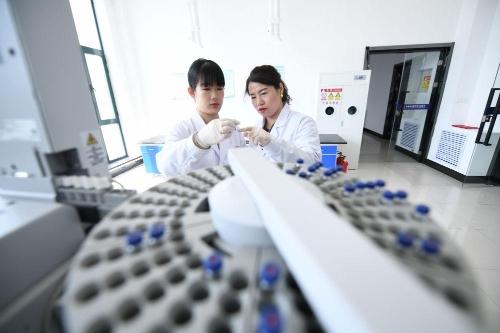2024年4月3日,在黑龙江北大荒农业股份有限公司友谊分公司黑土地保护实验室,工作人员在测量土壤有机氯、有机磷农药残留数值。新华社记者 王松 摄
