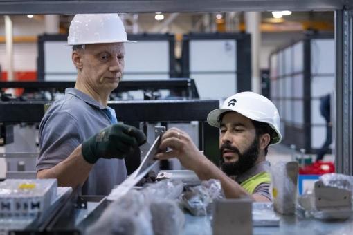 1月26日,在匈牙利比奥托尔巴吉,员工在蔚来能源欧洲工厂工作。新华社发(弗尔季·奥蒂洛 摄)