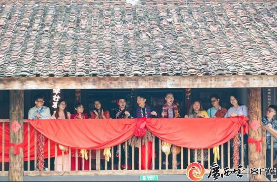 广西三月三,是大家展示歌艺、交流情感的重要场合。当天,除了精彩纷呈的文艺表演,在天琴壮寨木楼前的相亲大会上,广大青年男女手拉着手欢快地跳起竹竿舞,并以歌为媒,通过山歌对唱和抛绣球的方式表达着内心的情感,寻找着心仪的伴侣。同时,东盟青年水坝走秀、水上中越服装秀等韵味十足,烂漫多彩,以传统服饰为媒架起国际文化艺术交流和增进友谊的桥梁。