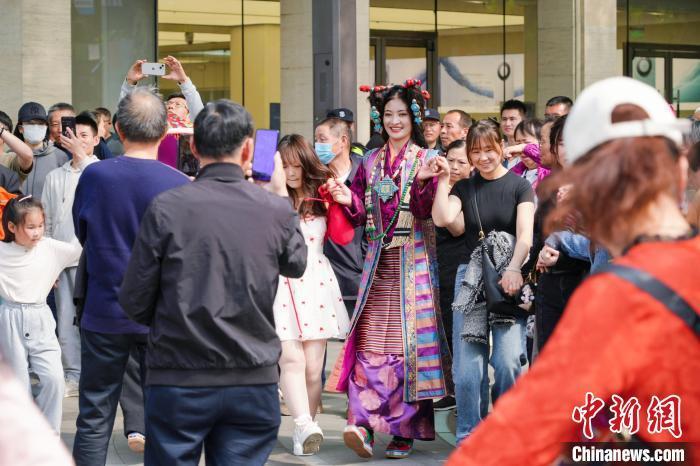 此次文旅推广活动中,主办方在西子湖畔举办了一场藏装时装秀,十多位拉萨市当雄县艺术团的演职人员身着各式藏装献上文艺表演、时装走秀,吸引广大游客驻足参与互动。