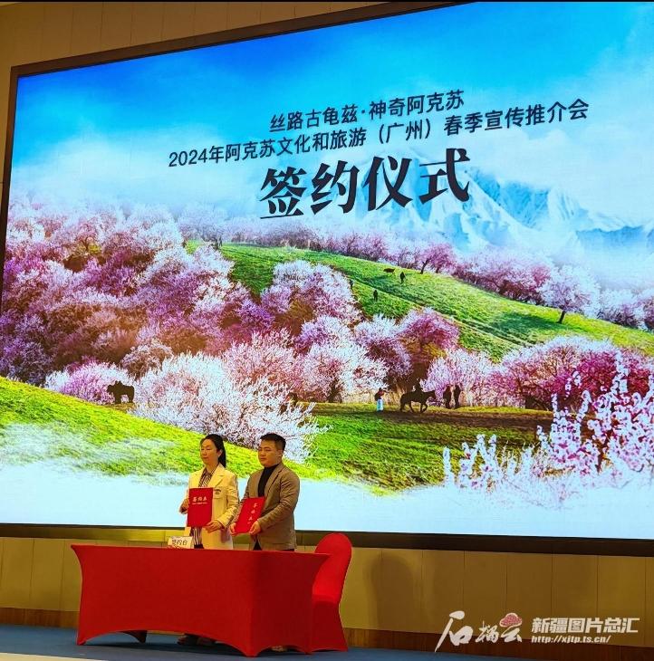 阿克苏地区旅游企业与广东旅游企业签订合作协议。阿克苏地区文化体育广播电视和旅游局供图