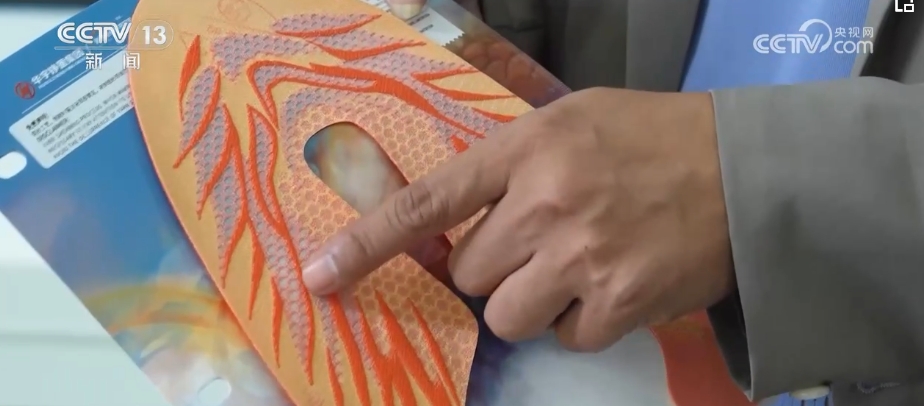 苏成喻是晋江一家运动鞋面料生产企业的负责人,他向记者展示的是一款最新设计的具有中国传统文化元素的运动鞋面料。