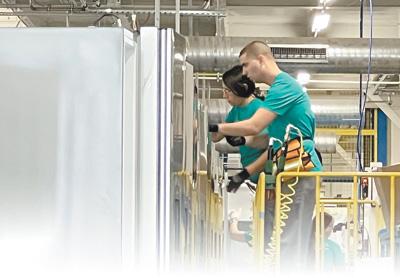 2023年9月,海信投资建设的塞尔维亚冰冷工厂竣工运营。图为工人在生产线上忙碌。记者 李强 摄