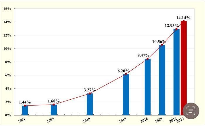 ——总体发展情况。2023年中国公民具备科学素质的比例达14.14%,比上年提高1.21个百分点,相比“十三五”后期(2018―2020年)年均1.05个百分点的增幅,“十四五”前段(2021―2022年)年均1.19个百分点的增幅,呈现提速增长趋势。