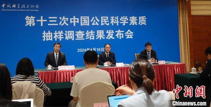 4月16日下午,第十三次中国公民科学素质抽样调查结果发布会在北京举行。中新网记者 孙自法 摄