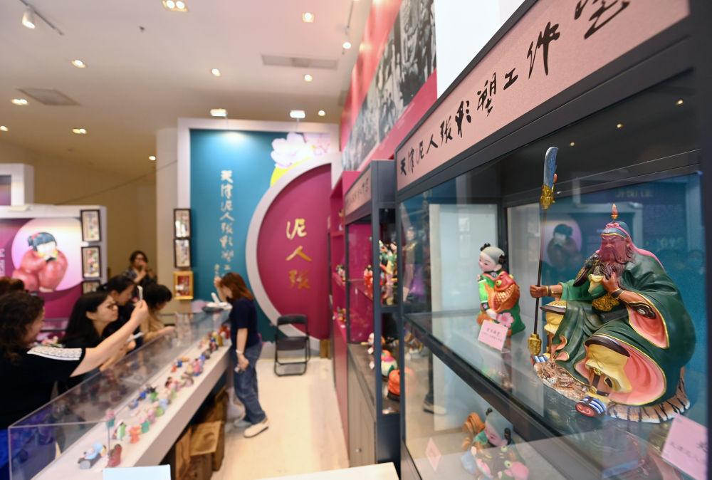 游客在位于天津五大道的一家“泥人张”店铺内选购(4月13日摄)。