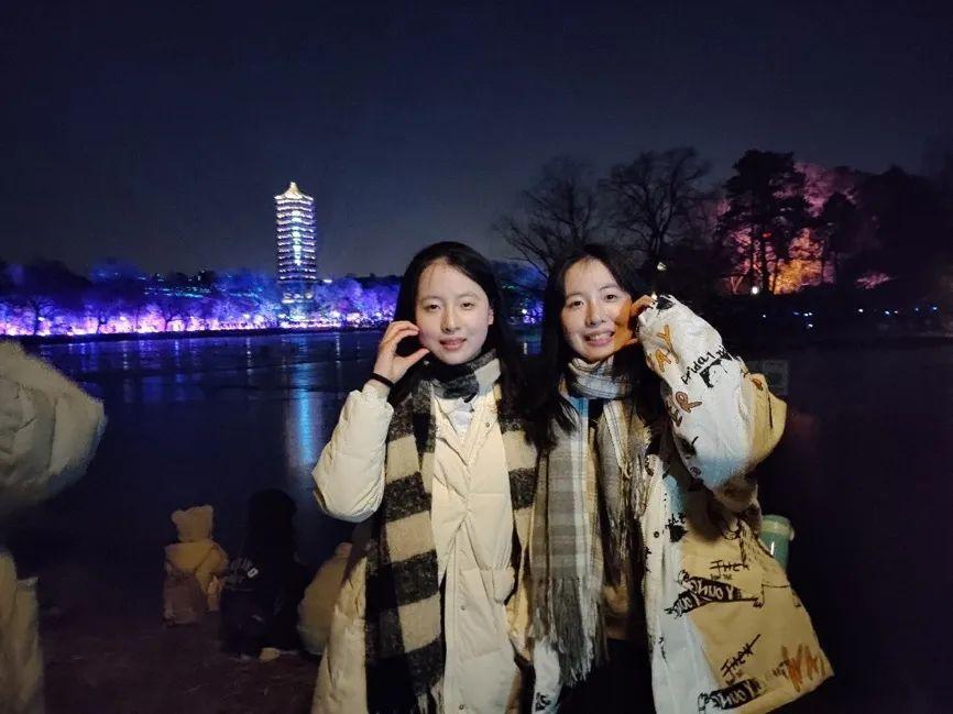 袁晓秋(左)、袁知秋(右)在未名湖跨年