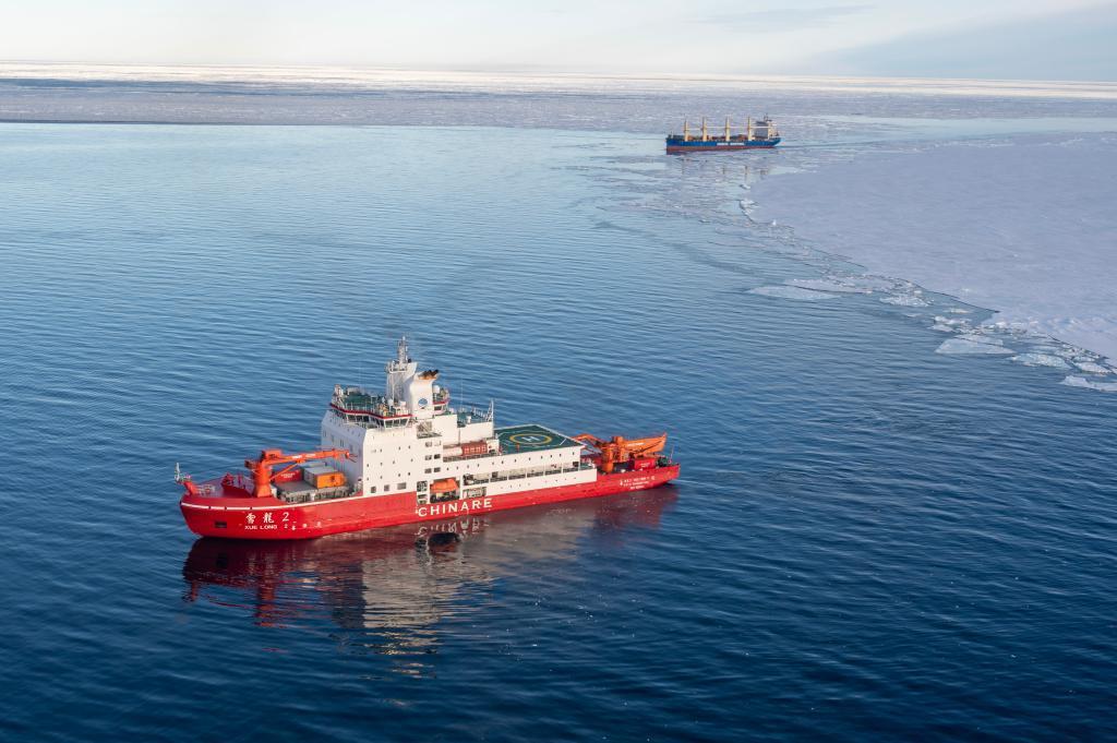 2023年12月6日,“雪龙2”号和“天惠”轮成功穿越复杂冰区。新华社记者 周圆 摄