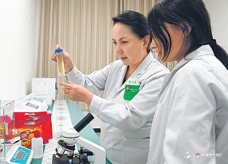 新疆医资豪健康科技有限公司技术人员在研究配制新茶叶。乃比江·艾则孜摄