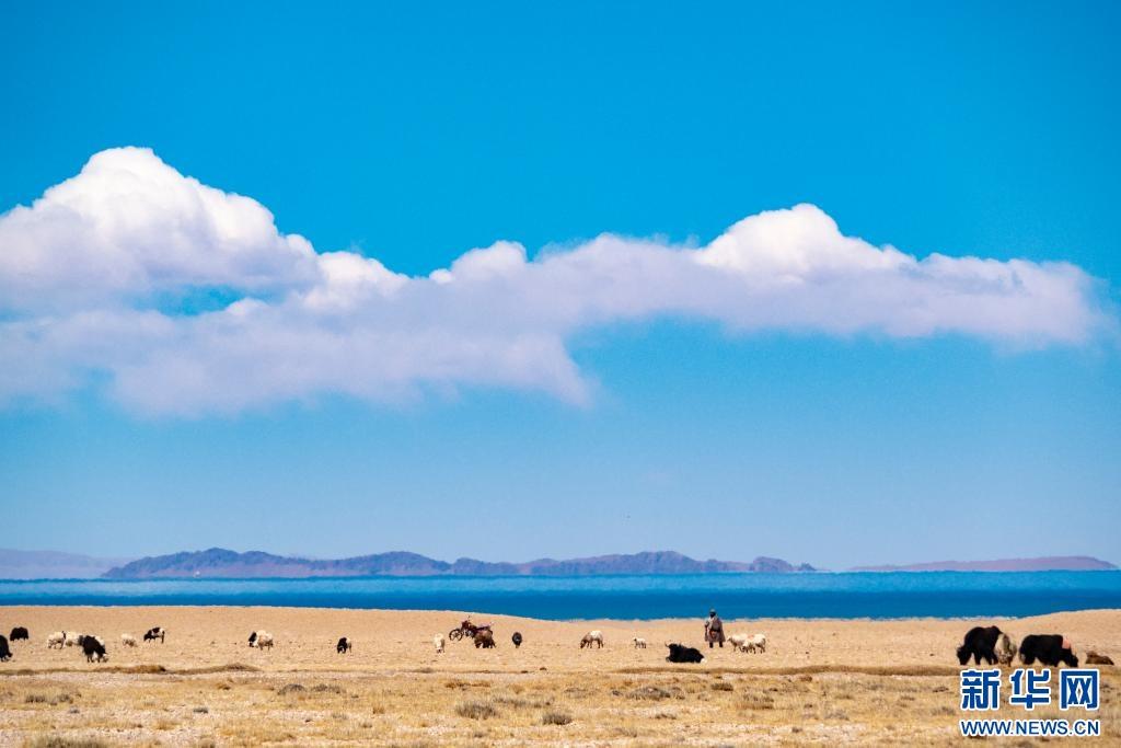4月14日,在色林错国家级自然保护区拍摄的放牧人。新华网 旦增努布 摄